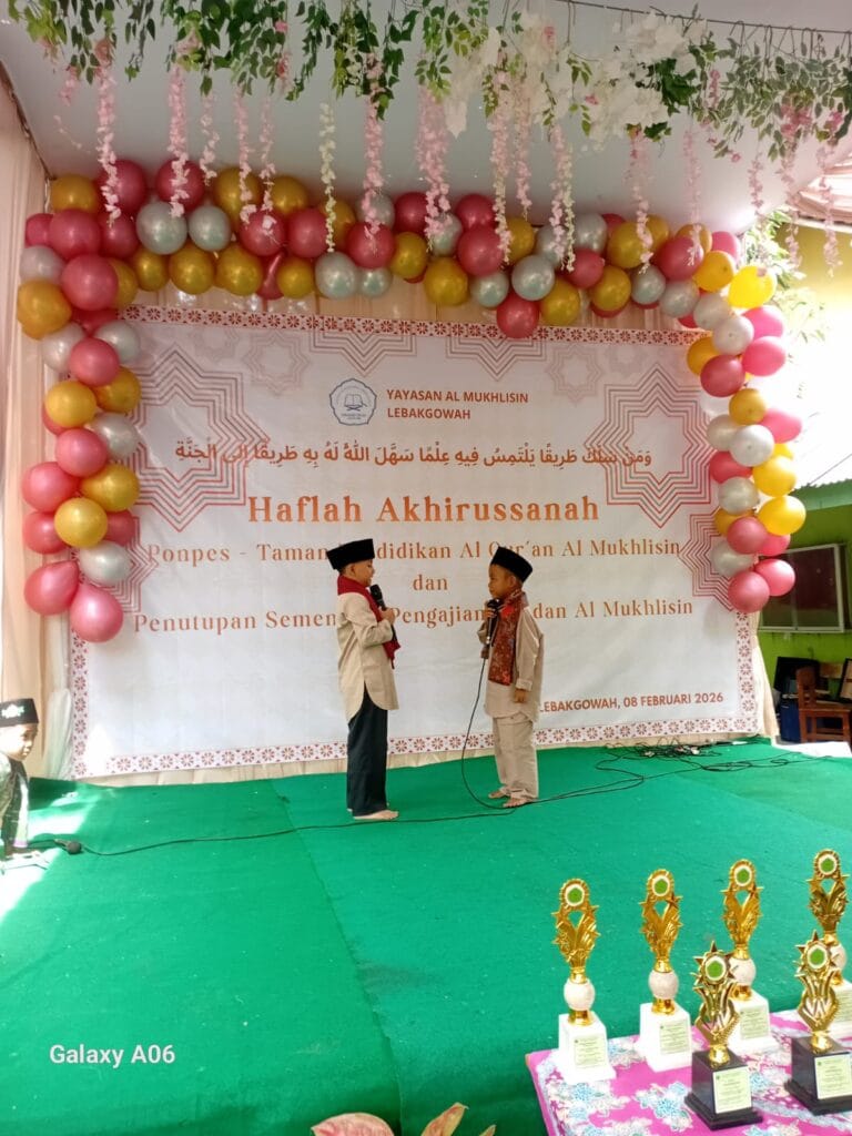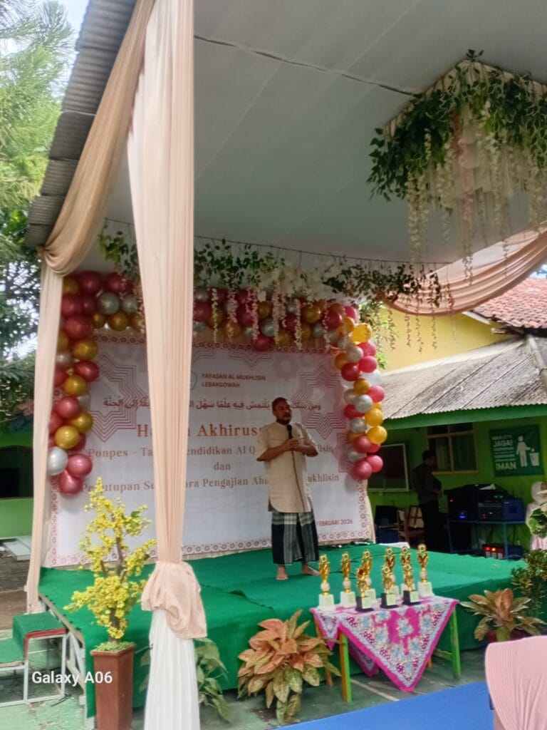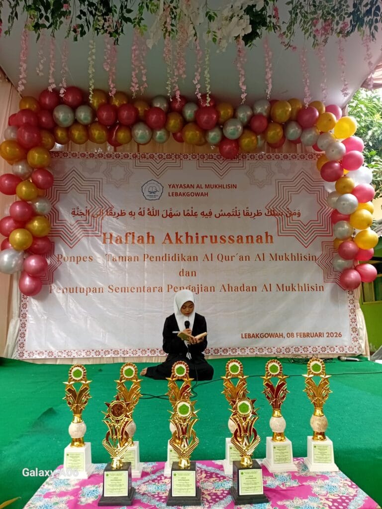 Lebakgowah – Pondok dan TPQ Al Mukhlisin Lebakgowah menggelar kegiatan Pengajian Penutupan Sementara Jamaah Ahadan yang dirangkaikan dengan Haflah Akhirussanah, pada Ahad, 08 Februari 2026, bertempat di lingkungan Pondok Al Mukhlisin. Kegiatan ini dimulai pukul 08.00 WIB hingga selesai dan berlangsung dengan khidmat serta penuh kebersamaan.